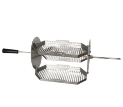 De Carrousel is gemaakt van RVS en heeft 3 plateau’s en past op kamado/ bbq’s vanaf 21 inch of groter. De plateua’s / mandjes draaien mee met de roterende beweging van de rotisserie. Hij is erg makkelijk te monteren op de rotisserie, je schuift het over de spit en schroeft hem vast met 2 vlinderschroeven.