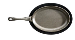 - Materialen: Gietijzeren pan met onderzetter