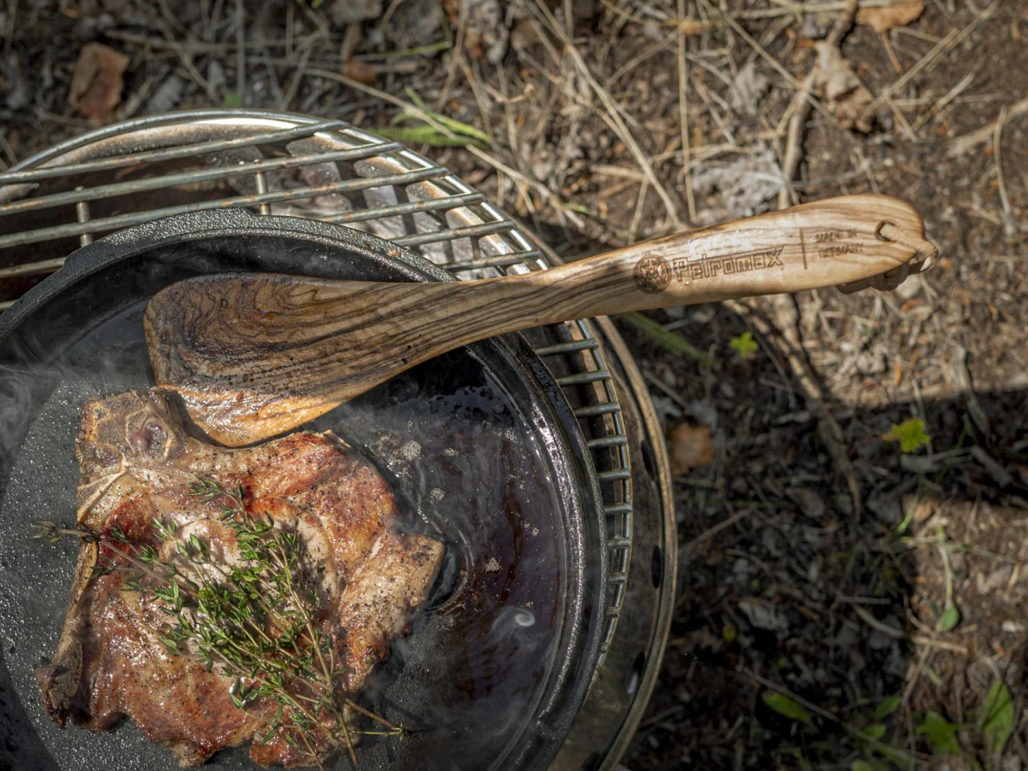 Verzorgingstip: Hout is een natuurlijk materiaal en kan onder extreme omstandigheden barsten. Maak daarom de Petromax houten spaten grondig schoon met warm water en reinigingspoeder en laat hem vervolgens goed drogen. Volg deze instructies om lang plezier te hebben van je Petromax spatel.