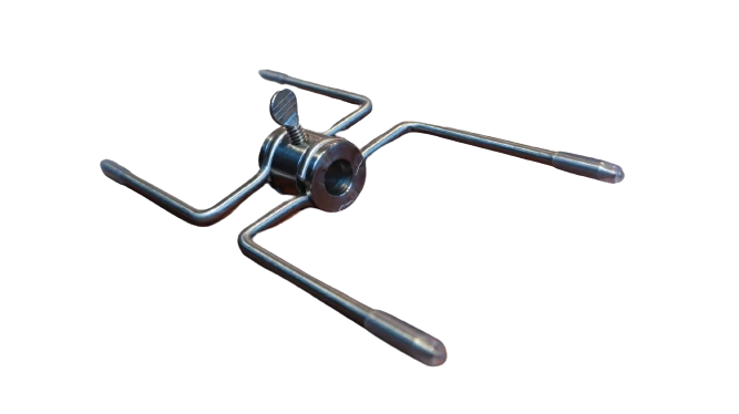 De spitvorken zijn gemaakt van Roest vast staal en hebben elk 4 tanden om ervoor te zorgen dat het vlees stevig aan de spitstaaf blijft hangen wanneer het ronddraait boven het vuur. De vorken kunnen op de staaf worden vastgemaakt met de meegeleverde borgschroeven. Ideaal als je 2 kippen tegelijk wil braden aan het spit!